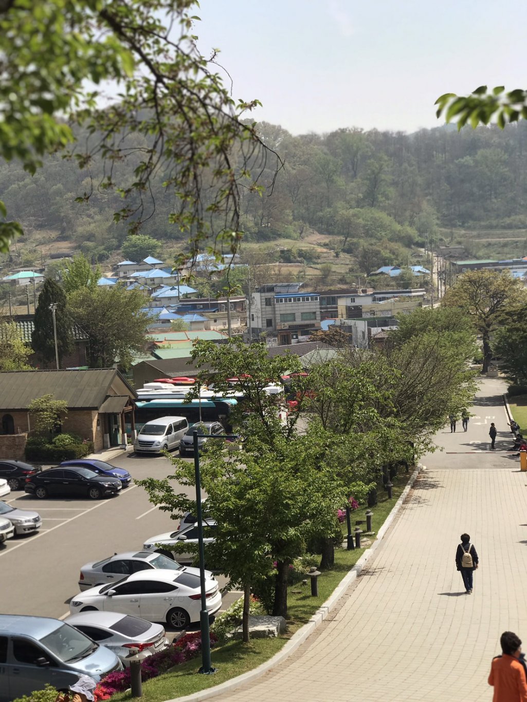 停車在公園旁的停車場