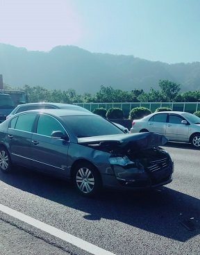 車子就在定速巡航下...撞上完全靜止正在排隊下交流道的車子